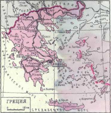 Греция расположена на юге Балканского полуострова и на многочисленных островах Эгейского и Ионического морей. Восточное побережье Греции очень изрезано. Здесь много удобных бухт для стоянки судов. Множество красивых островов Эгейского моря лежат так близко один от другого, что почти с каждого сквозь дымку моря можно увидеть соседние острова.
